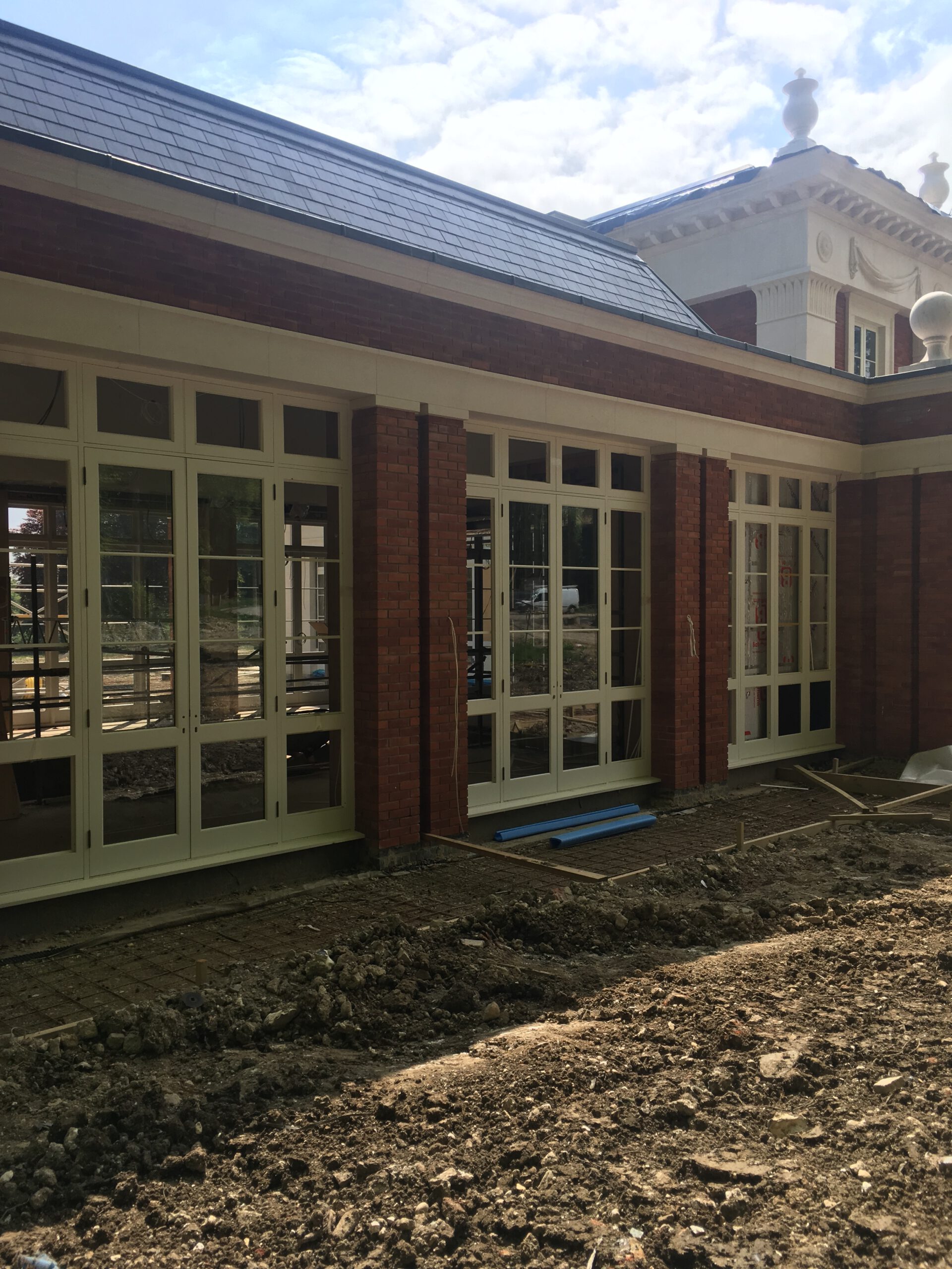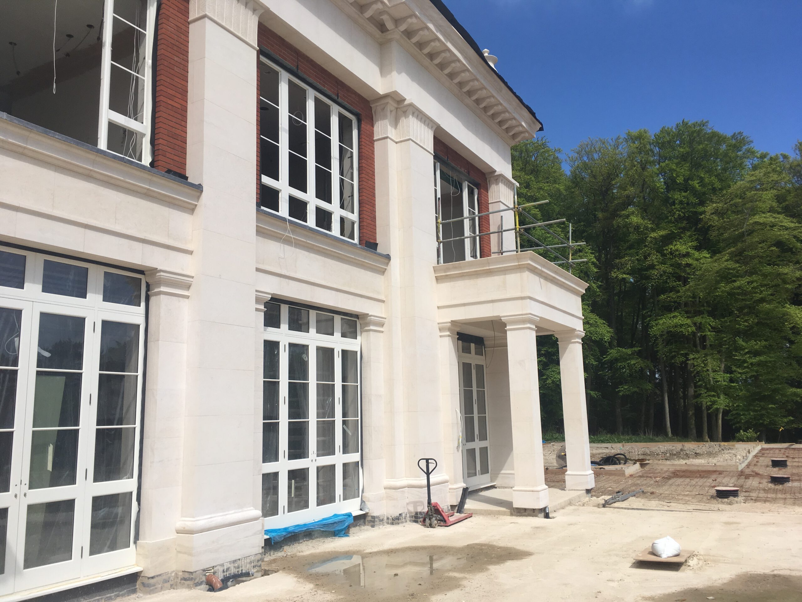 - Materials: We combined a mix of Portland stone and warm-toned Michelmersh brick for the primary facade to enhance the architectural depth and refinement of Prof. Robert Adam’s vision.